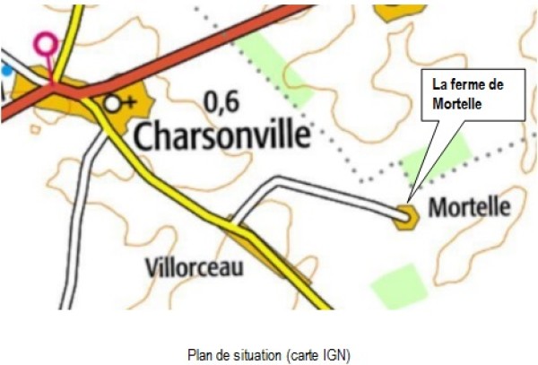 Le but de ce document est de recenser les propriétaires et quelques exploitants, à partir du 17ème siècle jusqu'en 2024, de la ferme de Mortelle située sur la commune de Charsonville. Cette ferme est implantée au milieu des champs, à l’extrémité d’une petite route dite « de Villorceau à Mortelle » ou chemin vicinal n° 13.