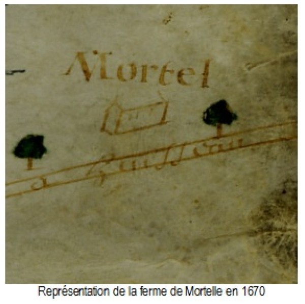 La signification du nom de cette ferme n’est pas connue actuellement. Par contre l’origine de la ferme date probablement de la période gallo romaine car des fondations de murs, des tegulae (tuiles plates de l’Antiquité qui servait à couvrir les toits) et de la céramique ont été retrouvées dans la ferme de Mortelle en 1890.