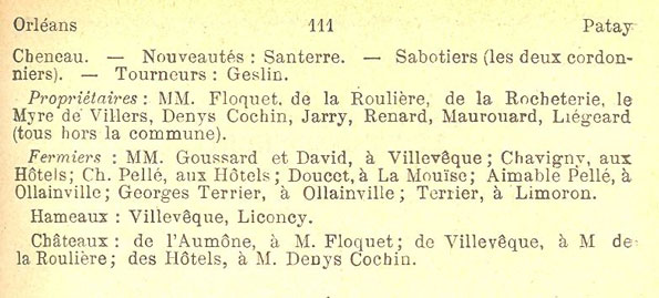 Le document ci-après est un fac similé extrait de l'annuaire général d'Orléans et des communes du Loiret pour l'année 1906